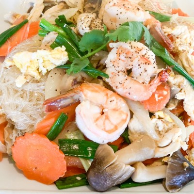 Crispy noodles, chicken, and shrimp with sweet Thai sauce.