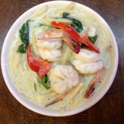 Thai green curry, chili, bamboo shoots, and coconut milk.